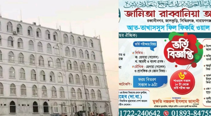 জামিআ রাব্বানিয়া আরাবিয়ায় ভর্তির তারিখ ঘোষণা