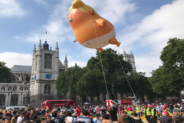 আবদুল্লাহ তামিম: মার্কিন প্রেসিডেন্ট ডোনাল্ড ট্রাম্প চার দিনের সফরে ব্রিটেন গেছেন। সফরের প্রতিবাদের অংশ হিসেবে ব্রিটিশ পার্লামেন্টের পাশে তার মতো দেখতে ছয় মিটার লম্বা একটি বেলুন উড়ানো হয়েছে।
