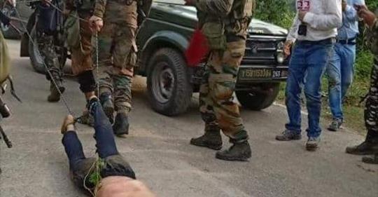 আওয়ার ইসলাম: সামাজিক যোগাযোগমাধ্যমে ছড়িয়ে পড়া একটি ছবিকে কেন্দ্র করে দেশটির সেনাবাহিনীর বিরুদ্ধে তীব্র ক্ষোভ ছড়িয়ে পড়েছে ভারত নিয়ন্ত্রিত জম্মু-কাশ্মীরে। ছবিতে দেখা যায়, এক বিদ্রোহী নেতার মৃতদেহের পায়ে শেকল বেঁধে টেনে নিয়ে যাচ্ছে ভারতীয় সেনারা।