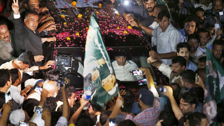 কারাগারের বাহিরে দলের সিনিয়র নেতাদের সঙ্গে তার দলের সমর্থকরা অপেক্ষা করছিলেন। কারাগার থেকে বের হয়ে তিনি চাকলালা থেকে ব্যক্তিগত বিমানে লাহোরের উদ্দেশ্যে রওনা দেন।