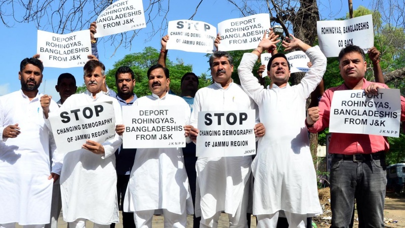 জেকেএনপিপি সমর্থকরা এসময় ‘ছাড়ো আমাদের জম্মু প্রদেশ, রোহিঙ্গারা যাও বাংলাদেশ’ বলে স্লোগান দেয়। জেকেএনপিপি চেয়ারম্যান হর্ষদেব সিং বলেন, ‘জম্মু শহর ও আশপাশের এলাকায় মিয়ানমার ও বাংলাদেশের বাসিন্দারা বাস করছেন।