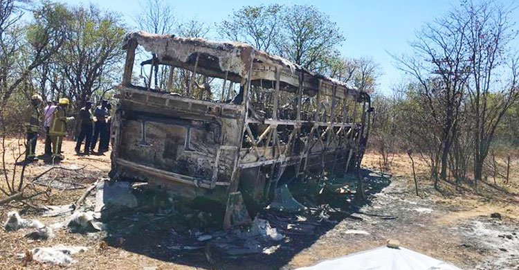 জিম্বাবুয়েতে নিয়োজিত রেড ক্রস এক টুইট বার্তায় দুর্ঘটনা কবলিত বাসটির একটি ছবি প্রকাশ করেছে। ছবিতে দেখা গেছে, বাসটি একেবারে পুড়ে গেছে।