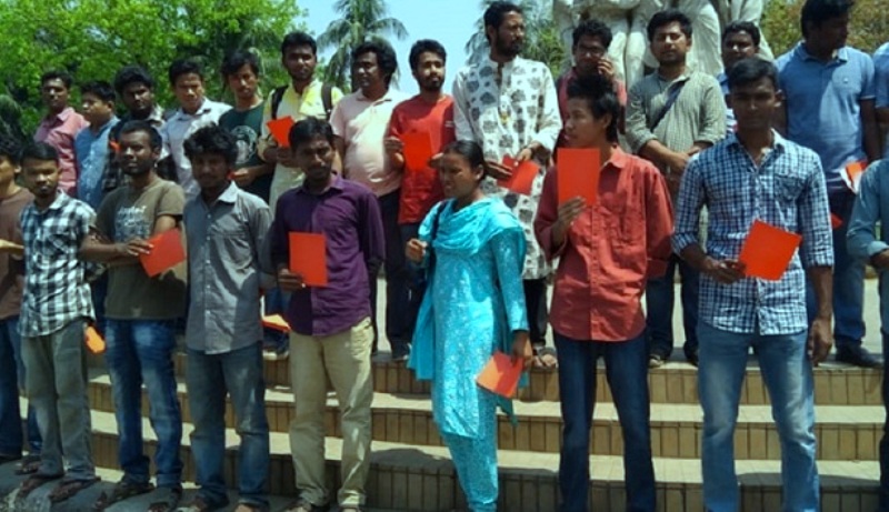 আজ শনিবার ১১টার দিকে নির্বাচনে কারচুপি ও ভোট ডাকাতির প্রতিবাদে বিশ্ববিদ্যালয়ের রাজু ভাষ্কর্যে এ কর্মসূচী পালন করে তারা।