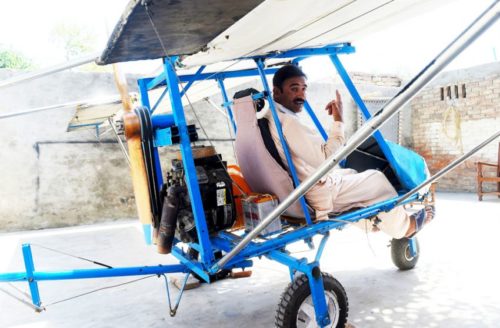 “একদিন মাথায় নিখুঁত পরিকল্পনা চলে এলো। রোডকাটার দিয়ে বানালাম ইঞ্জিন, চটের ডানা আর রিকশার চাকা হলো প্লেনের চাকা। তৈরি হয়ে গেল মিনি এয়ারক্র্যাফ্ট,” যুবকের চোখে গর্ব।