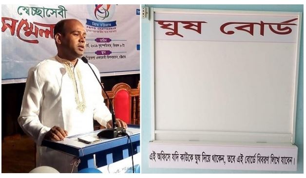অফিসের বাইরে একটি ‘ঘুষ বোর্ড’ স্থাপন করেছেন, যেখানে একজন ভুক্তভোগী গ্রাহক ঘুষ দেয়া নিয়ে তার হেনস্থার ঘটনা সেই বোর্ডে লিখে দিতে পারবেন।