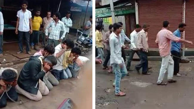 ভারতীয় গণমাধ্যমের বরাতে বলা হয়, গতকাল রোববার মধ্য প্রদেশের জেলার সাভালিকেড়া গ্রামে ওই ঘটনা ঘটে। গরু পাচারের অভিযোগে ২৫ জনকে দড়ি দিয়ে বেঁধে, কান ধরে উঠবস করিয়ে তাদের বেধড়ক মারধর করা হয়েছে।