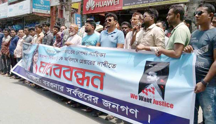 আজ রোববার সকাল সাড়ে ১১টার দিকে বরগুনা প্রেসক্লাব চত্বরে বরগুনার সর্বস্তরের জনগণের ব্যানারে এ মানববন্ধন কর্মসূচি পালিত হয়।
