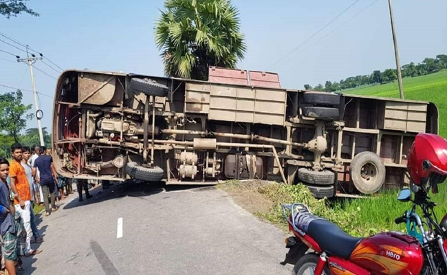 পুলিশ ও স্থানীয় সূত্রে জানা যায়, বাসটি সকাল সাড়ে আটটার দিকে মদন থেকে ঢাকার উদ্দেশ্যে রওনা হয়ে অভয়পাশা (শ্রীপুর) পৌঁছা মাত্রই নিয়ন্ত্রণ হারিয়ে উল্টে যায়। এসময় বাসে থাকা ২৫ জন যাত্রী গুরুতর আহত হয়।