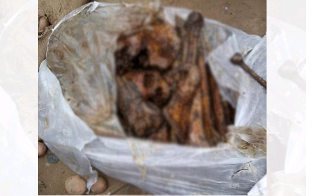 ঠাকুরগাঁও ভুল্লি কাউন্টারে বস্তা নামিয়ে খুলে দেখে তিনজন মানুষের মাথার খুলিসহ বিপুল পরিমাণ হাড়। পরে পুলিশে খবর দিলে তা থানায় নিয়ে আসা হয়।