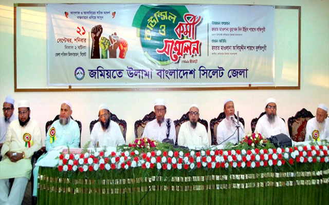 শনিবার (২১ সেপ্টেম্বর) বিকেল ২টায় সিলেট জেলা পরিষদ মিলনায়তনে জমিয়তে উলামা বাংলাদেশ সিলেট জেলা শাখার কাউন্সিল ও কর্মী সম্মেলনে প্রধান অতিথির বক্তব্যে তিনি এ আহ্বান জানান।