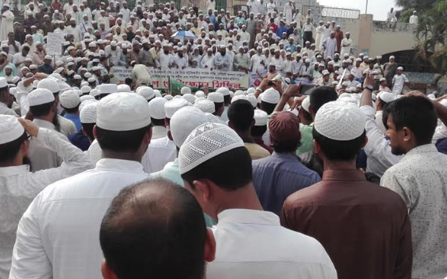 আজ মঙ্গলবার বাদযোহর চট্টগ্রাম জমিয়তুল ফালাহ জাতীয় মসজিদের চত্বরে হেফাজতে ইসলাম বাংলাদেশ চট্টগ্রাম মহানগর আয়োজিত বিশাল বিক্ষোভ সমাবেশ নগর সভাপতি মাওলানা তাজুল ইসলাম (পীরসাহেব ফিরোজশাহ) এর সভাপতিত্বে অনুষ্ঠিত হয়।