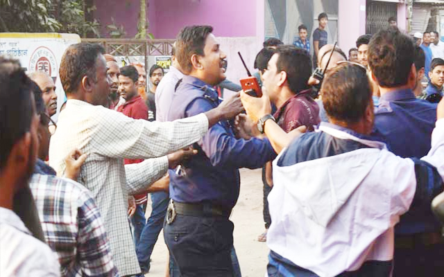 বিআরটিসির শ্রমিকরা জানান, বিকেল ৪টার দিকে দিনাজপুর জেলা সড়ক পরিবহন মালিক গ্রুপ ও জেলা মোটর পরিবহন শ্রমিক ইউনিয়নের নেতাকর্মীরা বাস চলাচলে বাধা দিতে এসে সুপারভাইজার আসাদুজ্জামান ও নিরাপত্তাকর্মী বাবুল মিয়া, সলিম ইসলামকে মারধর করেন।