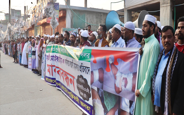 আওয়ার ইসলাম: ঢাকা দক্ষিণ সিটি কর্পোরেশন এর ৬৭নং ওয়ার্ডে বিপুল ভোটে সদ্য বিজয়ী কাউন্সিলর হাজী ইবরাহীমের কার্যালয়ে ০২ ফেব্রুয়ারি (রবিবার) রাত ৮টায় হামলার প্রতিবাদে মানববন্ধন করেছে এলাকাবাসী।