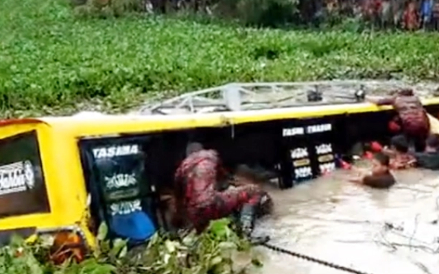 আজ মঙ্গলবার সকালে সিলেট থেকে সুনামগঞ্জ যাওয়ার পথে এ দুর্ঘটনা ঘটে। বাসটিতে ২৫ থেকে ২৬ জন যাত্রী ছিলেন। এদের মধ্যে চারজন সাঁতরে তীরে উঠতে পারলেও বাকিরা এখনও নিখোঁজ রয়েছেন।