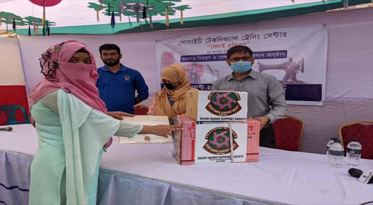 নিজস্ব প্রতিবেদক: সাইলেন্ট হ্যান্ডস সাপোর্ট সোসাইটির উদ্যোগে রাজধানীর রায়েরবাজারে প্রশিক্ষণার্থীদের মধ্যে সেলাই মেশিন বিতরণ করা হয়েছে। একইসঙ্গে তাদের সনদপত্র দেওয়া হয়।