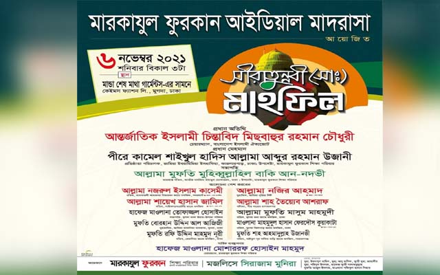 আওয়ার ইসলাম ডেস্ক: রাজধানীর মুগদার মারকাযুল ফুরকান আইডিয়াল মাদরাসা সীরাতুন্নবী সা. মাহফিলের আয়োজন করেছে। আগামী ৬ নভেম্বর (শনিবার) মান্ডা শেষ মাথা গার্মেন্টসের সামনে মাহফিলটি অনুষ্ঠিত হবে।