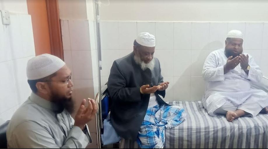 আজ বধবার (১৭ নভেম্বর) হযরতের শারীরিক অবস্থার খোঁজ-খবর নিতে ইসলামী আন্দোলন বাংলাদেশ ঢাকা মহানগর সভাপতির নেতৃত্বে নগর দায়িত্বশীলগণ হাসপাতালে যান। হুজুরের দ্রুত আরোগ্য কামনা করে মহান আল্লাহর নিকট দোয়া মোনাজাত করা হয়। অসুস্থাবস্থায় রাজধানীর আল-কারীম হাসপাতালে বেশ কয়েকদিন যাবৎ চিকিৎসাধীন রয়েছেন।