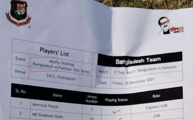 চট্টগ্রামে দুই ম্যাচ সিরিজের প্রথম টেস্টে টসের পর যে ক্রিকেটার লিস্ট সংবাদমাধ্যমকে সরবরাহ করেছে, সেখানে এ ভুলটি করেছে বিসিবি।