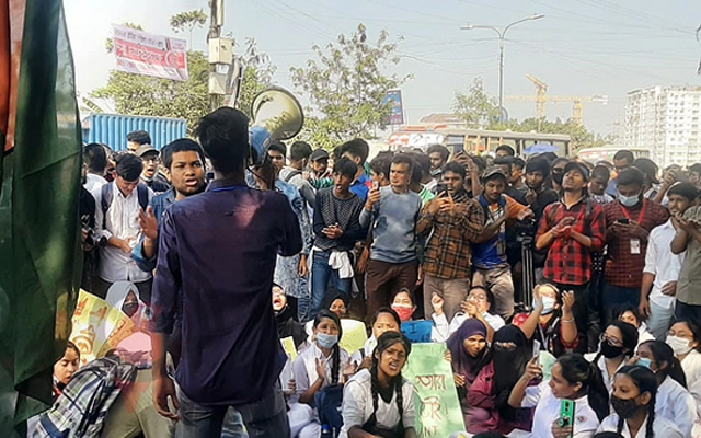 বুধবার (১ ডিসেম্বর) দ্বিতীয় দিনের মতো বেলা সাড়ে ১১টার দিকে ওই এলাকার বিভিন্ন শিক্ষা প্রতিষ্ঠানের শিক্ষার্থীরা সড়কে অবস্থান নেয়। এরপর দুপুর সাড়ে ১২টার দিকে দাবিগুলো তুলে ধরে শিক্ষার্থীরা।