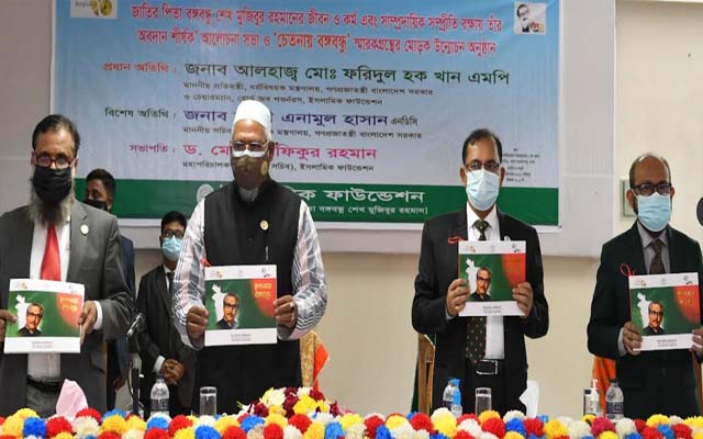 আজ (২৬ ডিসেম্বর) রবিবার দুপুরে ইসলামিক ফাউন্ডেশন আগারগাঁওস্থ মিলনায়তনে মুজিববর্ষ উপলক্ষে জাতির পিতা বঙ্গবন্ধু শেখ মুজিবুর রহমানের জীবন ও কর্ম এবং সাম্প্রদায়িক সম্প্রীতি রক্ষায় তাঁর অবদান শীর্ষক আলোচনা সভা ও ‘চেতনায় বঙ্গবন্ধু’ স্মারকগ্রন্থের মোড়ক উন্মোচন অনুষ্ঠানে প্রধান অতিথির বক্তব্যে তিনি এসব কথা বলেন।