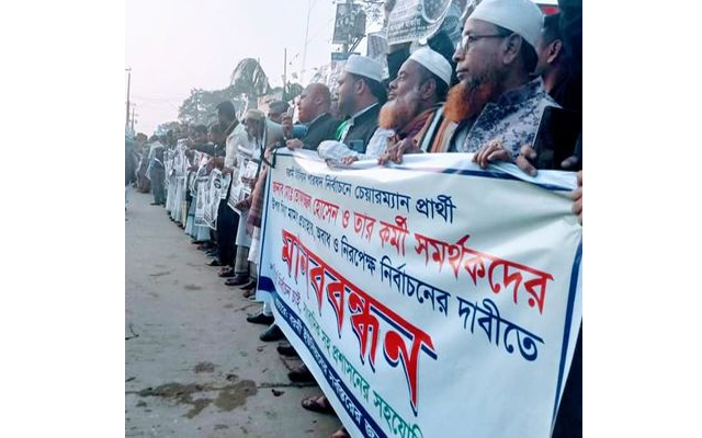 আজ রোববার (২ জানুয়ারি) বিকাল ৪টার সময় বরমী বাজার জনতার মোড়ে এই মানববন্ধন হয়। মানববন্ধনে এলাকার সাধারণ মানুষ অংশগ্রহণ করেন। মানববন্ধনে বক্তৃতায় আনারস প্রতীকের স্বতন্ত্র চেয়ারম্যান প্রার্থী তোফাজ্জল হোসেন বলেন, প্রতিদ্বন্দ্বী প্রার্থী আনোয়ার হোসেন সরকার ভোটারদের উপর চাপ প্রয়োগ, কর্মী সমর্থকদের হুমকি প্রদানসহ আচরণবিধি লংঘন করে আসছে।