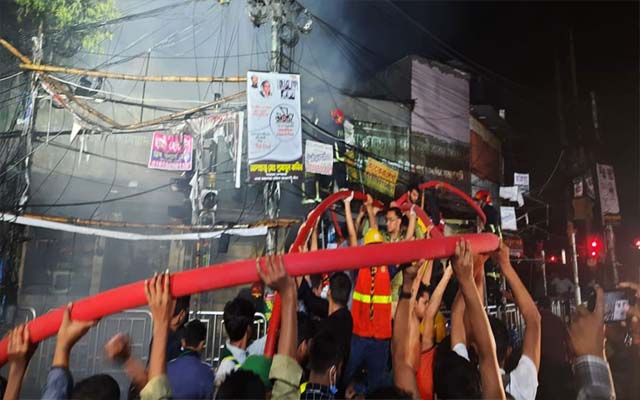 এদিকে প্রায় ১ ঘণ্টার আগুনে অনেক ব্যবসায়ী রাস্তায় বসেছেন। দোকানের লাখ লাখ টাকার বই পুড়ে যাওয়ায় আহাজারি করছেন তারা।