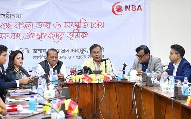 এর আগে নিউজ ব্রডকাস্টার্স অ্যালায়েন্স বাংলাদেশ (এনবিএ) আয়োজিত ‘শুদ্ধ বাংলা ভাষা ও সংস্কৃতিচর্চায় উপস্থাপকদের ভূমিকা’ শীর্ষক সেমিনারে প্রধান অতিথির বক্তৃতা দেন তথ্য ও সম্প্রচার মন্ত্রী।