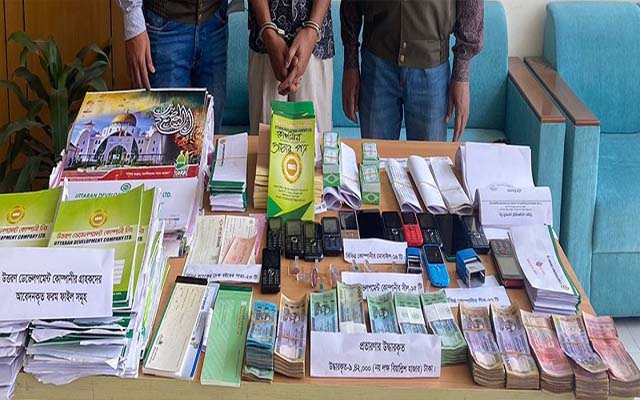 গ্রেফতারকৃতের নাম- মোঃ শহিদুল ইসলাম ওরফে লিমন। এসময় তার হেফাজত হতে ১৪টি মোবাইল ফোন, উত্তরণ ডেভেলপমেন্ট কোম্পানির ৮৮টি আবেদন ফরম, ১৫ টি সিল, বিভিন্ন ব্যাংকের ২৩ টি চেকের পাতা ও প্রতারণার নগদ ৯ লক্ষ ৪২ হাজার টাকা উদ্ধারমূলে জব্দ করা হয়।
