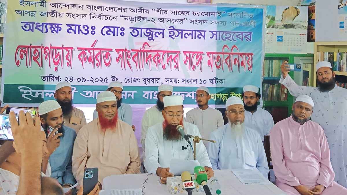 নড়াইলের লোহাগড়া উপজেলায় সাংবাদিকদের সঙ্গে মতবিনিময় করেছেন নড়াইল-২ আসনে ইসলামী আন্দোলন বাংলাদেশের প্রার্থী অধ্যক্ষ মাওলানা তাজুল ইসলাম। তিনি বলেন, গণমানুষের সেবার লক্ষ্য নিয়ে রাজনীতিতে এসেছেন তিনি। বুধবার (২৪ সেপ্টেম্বর) বেলা সাড়ে ১০টার দিকে লোহাগড়া রাম নারায়ণ পাবলিক লাইব্রেরি মিলনায়তনে এ মতবিনিময় অনুষ্ঠিত হয়। সভায় সভাপতিত্ব করেন ইসলামী আন্দোলনের লোহাগড়া উপজেলা শাখার সভাপতি মাওলানা মো. হাবিবুল্লাহ খান বেলালী। মাওলানা তাজুল ইসলাম বলেন, আসন্ন জাতীয় সংসদ নির্বাচনে নড়াইল-২ আসনে ইসলামী আন্দোলন বাংলাদেশের আমির পীরসাহেব চরমোনাই মনোনীত হাতপাখা প্রতীকের সংসদ সদস্য পদপ্রার্থী হিসেবে সবার দোয়া ও ভালোবাসা চাই। আমি নড়াইলবাসীর পাশে থাকতে চাই। একটি ব্যাংকে উচ্চপদস্থ কর্মকর্তা হিসেবে চাকরি করতাম। প্রায় আট বছর চাকরি থাকতেও তা স্বেচ্ছায় ছেড়ে দিয়েছি। গণমানুষের সেবার লক্ষ্য নিয়ে রাজনীতিতে যোগদান করেছি। ইসলামী আন্দোলনের নীতির আদর্শে বিশ্বাসী হয়ে এই দল থেকে জনকল্যাণে কাজ করতে চান বলে জানান তিনি। এ সময় উপস্থিত ছিলেন— সংগঠনের জেলা শাখার সহ-সভাপতি মাওলানা আইয়ুব হোসেন মিনা, ইসলামী যুব আন্দোলনের জেলা সভাপতি মুফতি ওমর ফারুক, সাংগঠনিক সম্পাদক মুফতি শেখ মুহাম্মদ জহিরুল ইসলাম, ইসলামী আন্দোলনের লোহাগড়া উপজেলা শাখার সাধারণ সম্পাদক হাফিজুর রহমান, সাংগঠনিক সম্পাদক মো. জিয়াউল ইসলাম, ইসলামী যুব আন্দোলনের লোহাগড়া শাখার সভাপতি মাওলানা আব্দুর রহমান, ইসলামি ছাত্র আন্দলনের সভাপতি মো. শরিফুল ইসলাম এবং সহযোগী সকল সংগঠনের নেতৃবৃন্দ। এদিন মতবিনিময় সভায় লোহাগড়া উপজেলায় কর্মরত বিভিন্ন প্রিন্ট, ইলেকট্রনিক ও অনলাইন মিডিয়ার সাংবাদিকগন উপস্থিত ছিলেন। আরএইচ/ |