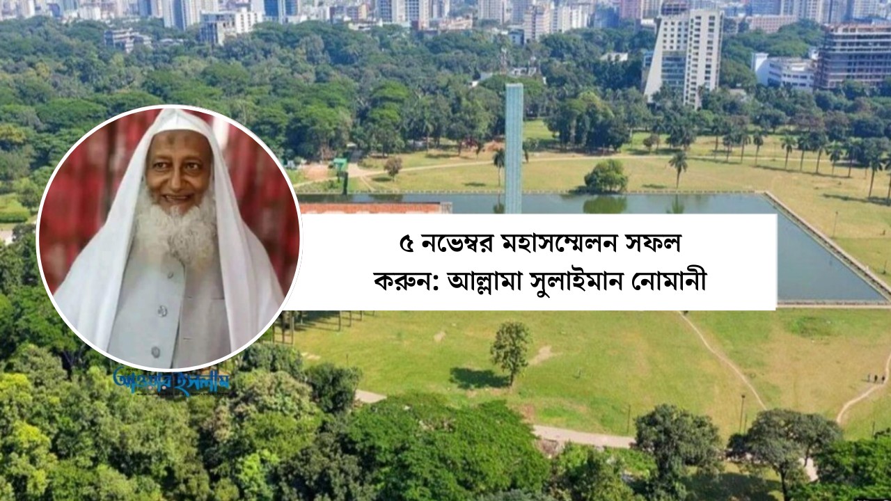তাবলীগ, কওমি মাদরাসা ও দ্বীন রক্ষার লক্ষে দেশের শীর্ষ ওলামা মাশায়েখ আহুত আগামী ৫ নভেম্বর ঐতিহাসিক সোহরাওয়ার্দী উদ্যানে যে মহাসম্মেলনের আহবান করা হয়েছে তাতে দেশের সর্বস্তরের ওলামা, ত্বলাবা, সুধী আওয়ামদের অংশগ্রহণ করার জন্য আহবান জানিয়েছেন হযরত হাফেজ্জী হুজুর রহ. এর বিশিষ্ট খলিফা, উপমহাদেশের প্রখ্যাত হাদিস বিশারদ, আল্লামা সুলাইমান নোমানী (হাফিজাহুল্লাহু)।