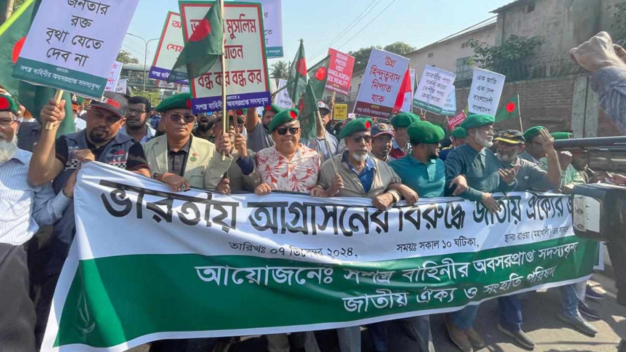 সরকারের প্রতি সাবেক এই সেনা কর্মকর্তারা বলেন, ভারতের সঙ্গে নতজানু পররাষ্ট্রনীতি নয়, হতে হবে সমতার ভিত্তিতে। এ ছাড়া বিগত সরকারের সময় ভারতের সঙ্গে করা চুক্তিগুলো প্রকাশের দাবি করা হয়। এরপর একটি বিক্ষোভ মিছিল বের করেন সাবেক সেনা কর্মকর্তারা।