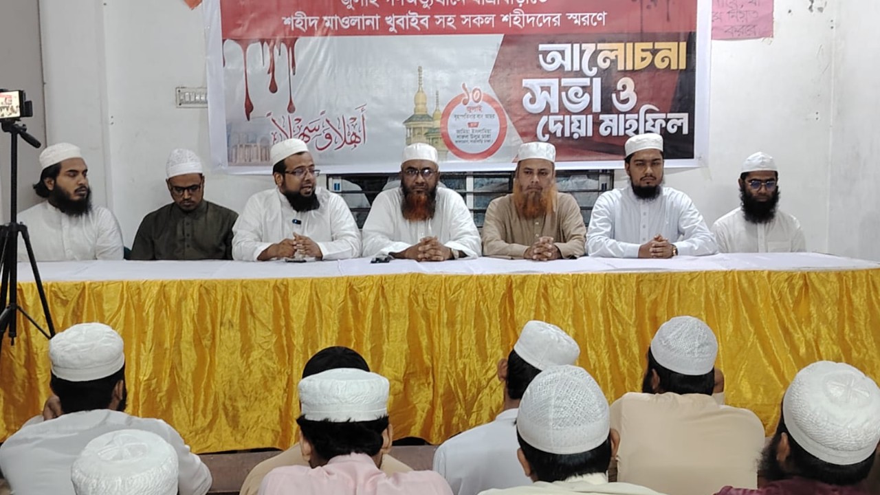 বৃহস্পতিবার (১০ জুলাই) বাদ মাগরিব রাজধানীর যাত্রাবাড়ীর একটি মিলনায়তনে জুলাই গণঅভ্যুত্থানের শহীদ মাওলানা খোবায়েবসহ সব শহীদের স্মরণে আয়োজিত আলোচনা সভা ও দোয়া মাহফিলে সভাপতির বক্তব্যে এসব কথা বলেন তিনি।