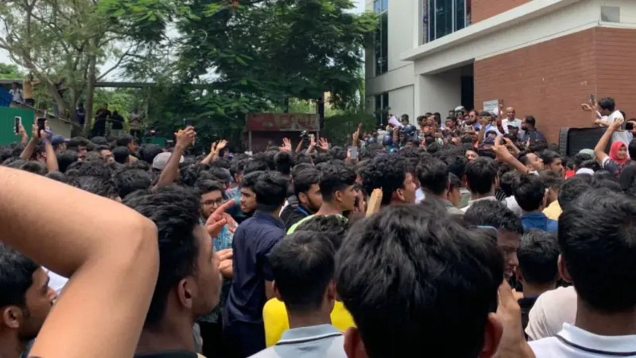 সোমবার (২২ জুলাই) দুপুর সোয়া দুইটার দিকে সংঘর্ষের এ ঘটনা ঘটে বলে现场 থেকে জানিয়েছেন বিবিসি সংবাদদাতা মুকিমুল আহসান। তিনি জানান, সংঘর্ষে অন্তত তিন শিক্ষার্থীর মাথা ফেটে গেছে। আহতদের হাসপাতালে নেওয়া হয়েছে।