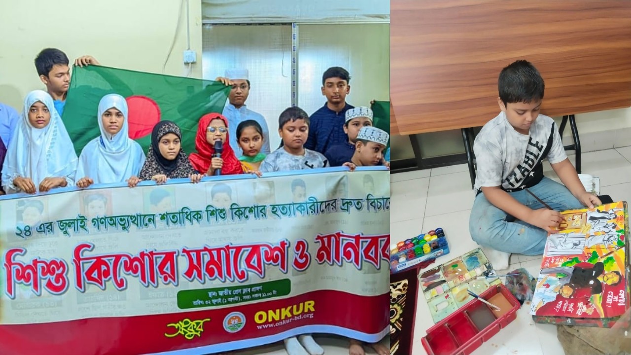 জাতীয় শিশু-কিশোর সংগঠন অংকুরের আয়োজনে আজ শুক্রবার রাজধানীর পুরানা পল্টনে অনুষ্ঠিত হলো “জুলাই গণঅভ্যুত্থান স্মরণ প্রতিযোগিতা ও মানববন্ধন”। এতে ২০২৪ সালের ঐতিহাসিক অভ্যুত্থানে নিহত শিশু-কিশোর শহীদদের হত্যাকারীদের দ্রুত বিচারের দাবি জানানো হয়।