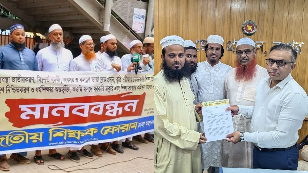 জাতীয় শিক্ষক ফোরাম ঢাকা মহানগর দক্ষিণ সভাপতি প্রিন্সিপাল আমীর হুসাইন এর সভাপতিত্বে এবং সেক্রেটারি প্রিন্সিপাল আলী আকবরের পরিচালনায় বিকেল ৩ টায় জাতীয় প্রেসক্লাব চত্বরে আয়োজিত মানববন্ধনে জাতীয় শিক্ষক ফোরামের কেন্দ্রীয় সিনিয়র সহ সভাপতি এবিএম জাকারিয়া বলেন, জাতীয়করণ ঘোষণার পূর্বেই ফাসিস্ট সরকার পতনের মাস আগস্ট থেকেই এমপিওভুক্ত শিক্ষকদের জন্য সরকারি শিক্ষা প্রতিষ্ঠানের ন্যায় বাড়ি ভাড়া, চিকিৎসা ভাতাসহ অন্যান্য সুবিধা চালু করতে হবে।
