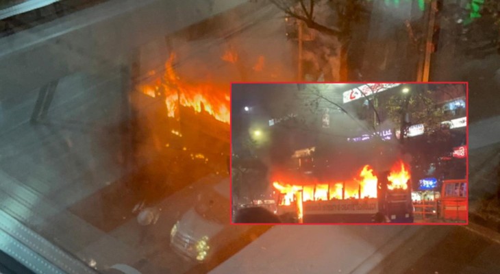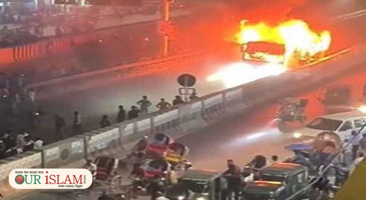 ধানমণ্ডির ল্যাবএইড হাসপাতালের সামনে বাসে আগুন