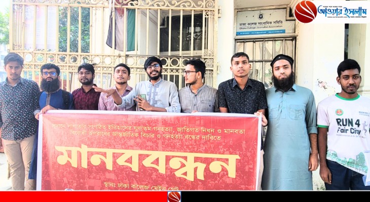 সুদানে গণহত্যা বন্ধ ও আন্তর্জাতিক বিচারের দাবিতে ঢাকা কলেজে মানববন্ধন