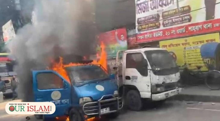 রমনা থানার সামনে পুলিশের গাড়িতে আগুন