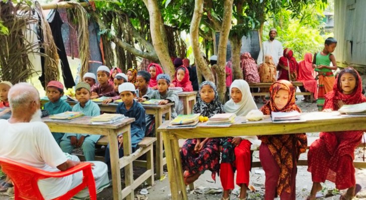নদীতে বিলীন মাদরাসা ভবন, খোলা আকাশের নিচে পাঠদান