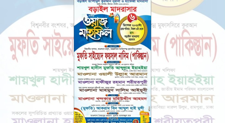 শরীয়তপুরের বড়াইল মাদরাসার বার্ষিক ওয়াজ মাহফিল শনিবার