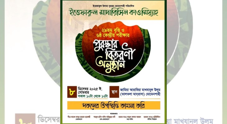 ময়মনসিংহের ইত্তেফাকুল মাদারিসিল কাওমিয়্যার পুরস্কার বিতরণ ৮ ডিসেম্বর