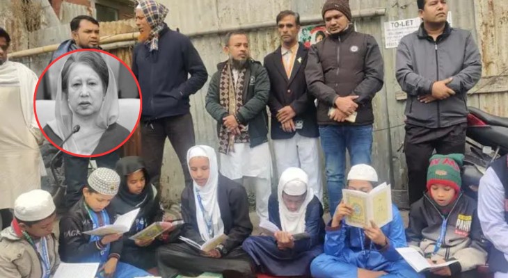 এভারকেয়ারের সামনে মাদরাসার শিক্ষার্থীদের কোরআন তেলাওয়াত