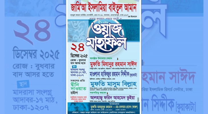 জামিআ ইসলামিয়া বাইতুল আমানের ওয়াজ মাহফিল ২৪ ডিসেম্বর