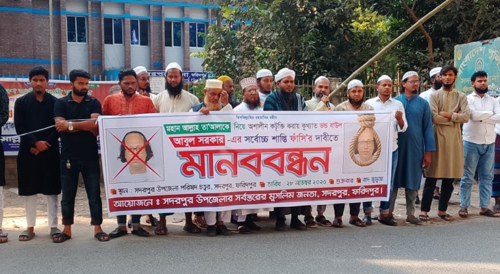 সদরপুরে বাউল আবুল সরকারের মৃত্যুদণ্ডের দাবিতে মানববন্ধন
