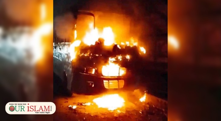 মানিকগঞ্জে মধ্যরাতে স্কুলবাসে আগুন, ঘুমন্ত চালক দগ্ধ
