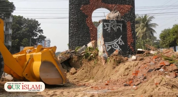 ঝিনাইদহে শেখ মুজিবের ‘এক তর্জনী’ স্তম্ভ গুঁড়িয়ে দিয়েছে ছাত্র-জনতা