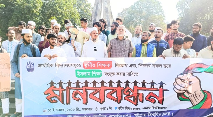 প্রাথমিক বিদ্যালয়ে ধর্মীয় শিক্ষক নিয়োগের দাবিতে চবিতে মানববন্ধন