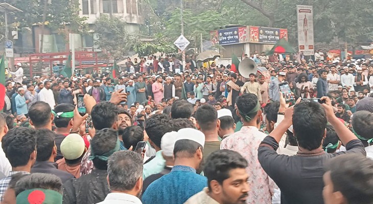‘আমরা সবাই হাদি হবো, যুগে যুগে লড়ে যাবো’ স্লোগানে উত্তাল শাহবাগ