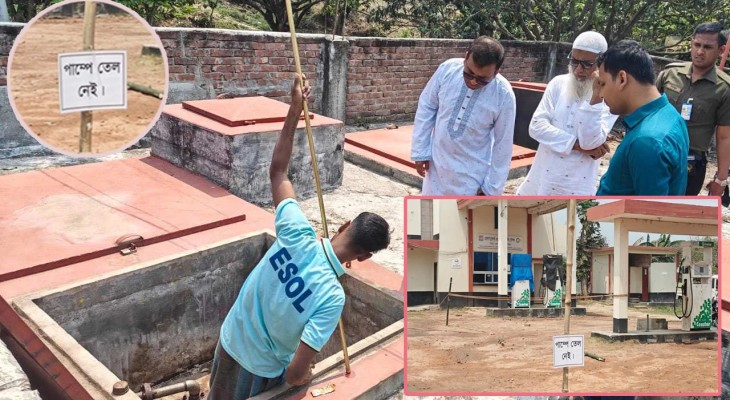 ‘তেল নেই’ লেখা পাম্পে মিলল সাড়ে ৯ হাজার লিটার জ্বালানি