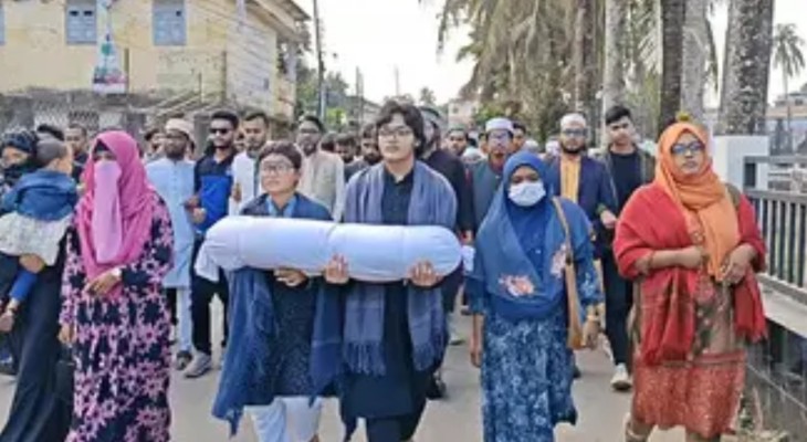পিরোজপুরে ওসমান হাদির প্রতীকী লাশ নিয়ে বিক্ষোভ